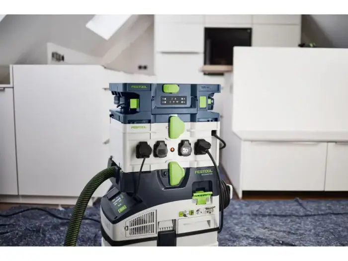 Der Festool SYS-MC 6/4 Multilader bringt Ordnung und Geschwindigkeit in dein Akku-Management. Bis zu vier Festool Akkupacks von 10,8 V bis 18 V werden gleichzeitig und parallel geladen – mit nur einer Steckdose. Dank vollständiger Systainer-Integration bleibt alles sauber organisiert, egal ob Werkstatt, Fahrzeug oder Baustelle. Die Akkus sind von allen Seiten zugänglich, selbst bei gestapelten Systainern. LED-Anzeigen informieren jederzeit über den aktuellen Ladestatus. Zusätzlich bietet der Multilader einen USB-C Ausgang zum Laden von Smartphone oder Tablet. Mit 700 W Leistung, maximal 6 A Ladestrom und sicherer Aufbewahrung für Akkus und Kabel ist der SYS-MC 6/4 die professionelle Lösung für alle, die mehrere Festool Akkus im Einsatz haben.