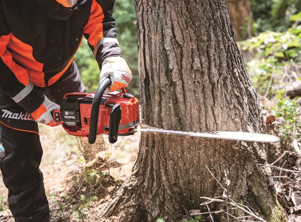 Die Makita UC030GE103 Akku-Kettensäge aus dem Makita XGT 40V Max System-Programm liefert maximale Leistung für Forst- und Gartenarbeiten. Mit 29 m/s Kettengeschwindigkeit und einer Schwertlänge von bis zu 50 cm eignet sie sich ideal zum Fällen, Ablängen und Entasten großer Holzstämme – vergleichbar mit einer 50 cm³ Benzin-Kettensäge. Die Säge bietet drei Leistungsmodi (ECO / Medium / High) mit Memory-Funktion für die zuletzt genutzte Einstellung. Die robuste XPT-Technologie schützt zuverlässig vor Staub und Spritzwasser, während die IPX4M-Zertifizierung auch Arbeiten bei Regen ermöglicht.