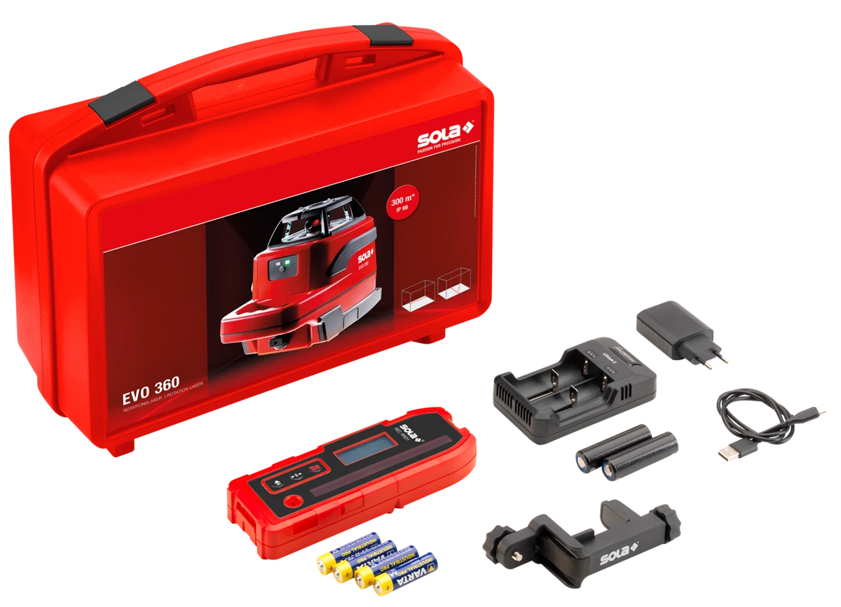 SOLA Rotationslaser Rot EVO 360 inkl. RRD1 Empfänger Klampe 18650 Akkuzelle 71017801